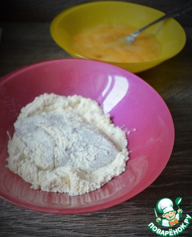 В это время яйца взбить с солью. Панировку и муку высыпать в разные пиалы. Муку посолить. По опыту - не высыпайте много панировки сразу, лучше периодически добавлять.