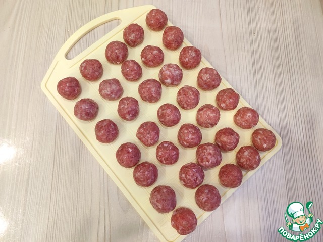 Пока варится перловая крупа, сформировать из готового фарша фрикадельки величиной примерно с грецкий орех.