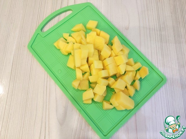 • Пока пассеруются овощи, картофель (1 шт.) почистить и нарезать не крупными кубиками или соломкой
