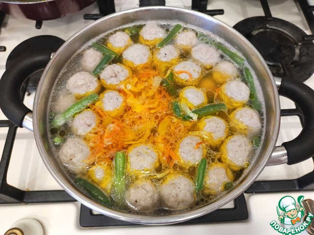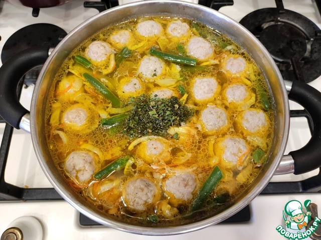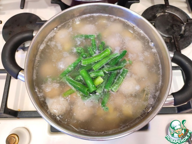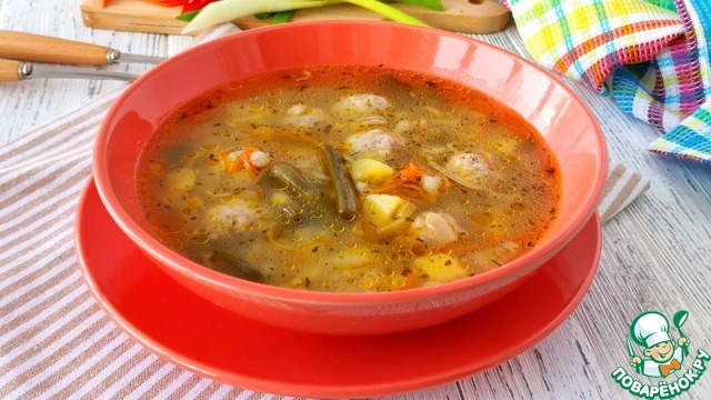 Рецепт «Суп с фрикадельками и стручковой фасолью»: