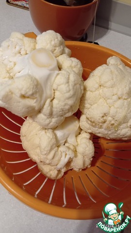 Капусту разделить на соцветия. У меня кочан большой и соцветия большие.