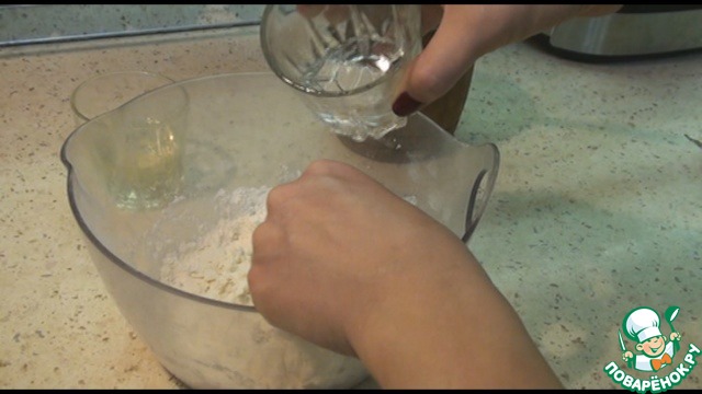 Перед замесом достаем тесто, вымесим его и оставим полежать на 15 минут.