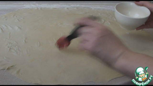 Растопить 30 гр сливочного масла и смазать им все тесто.