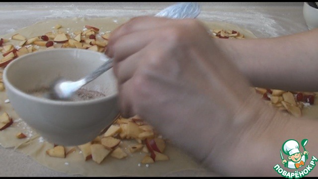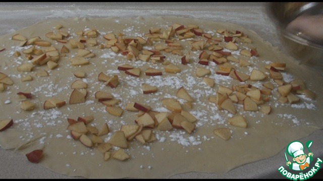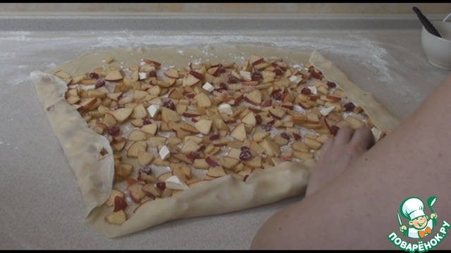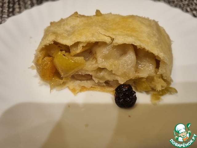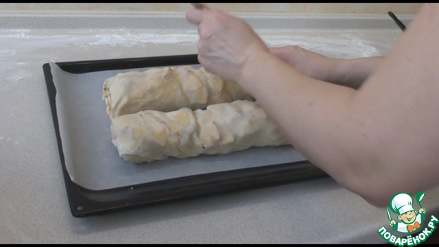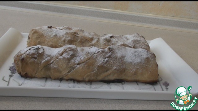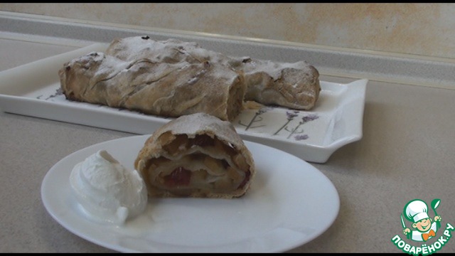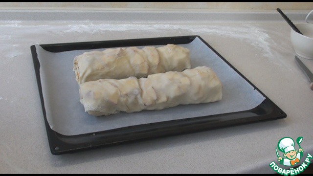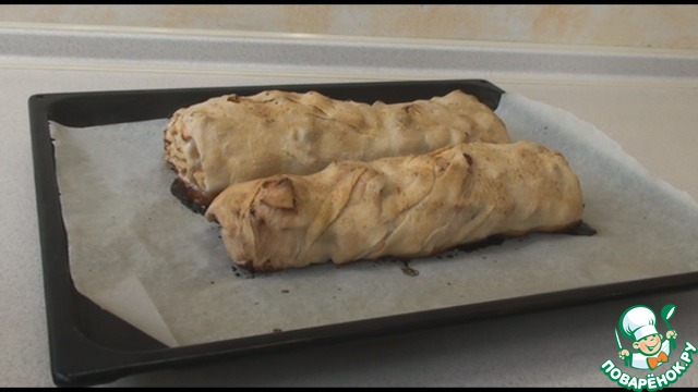 Мой штрудель не поместился целиком на противень, пришлось его разрезать.