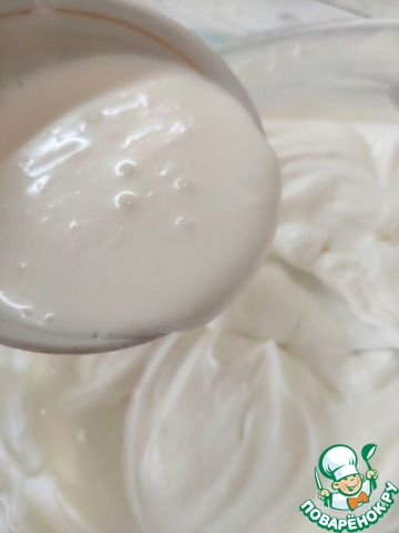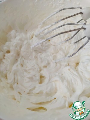 С помощью ручного миксера взбейте сливки до крепких пиков.