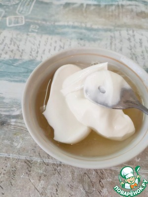 Желатин замочите в холодной воде. Оставьте на 10 минут для набухания.