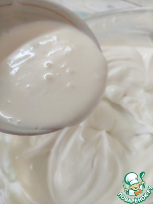 Затем введите эту желейную массу в творожный крем, постоянно перемешивая миксером на низкой скорости.