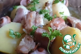 Закрыть крышкой или, при желании, лепёшкой из пресного или дрожжевого теста.