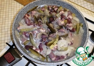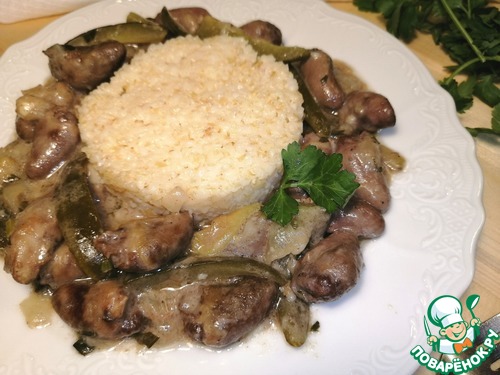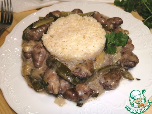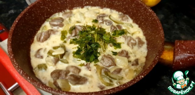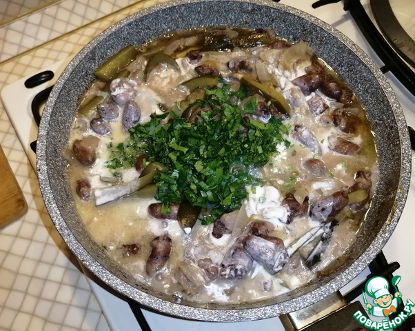 Нежные и очень вкусные куриные сердечки тушёные с луком и солёными огурцами в сливочной подливе захочется часто готовить родным и близким.