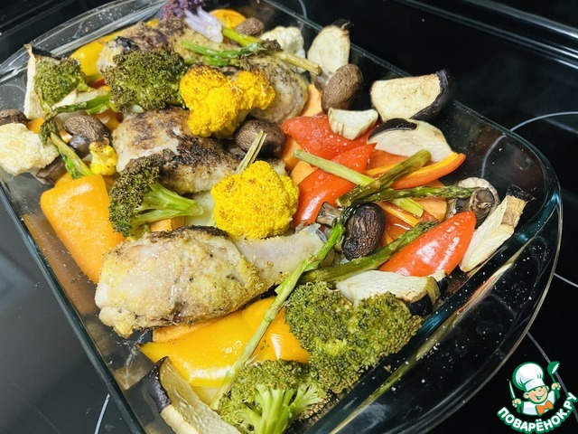 Рецепт «Куриные окорочка, запеченные с овощами»: