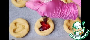Теперь заполняем сердечки джемом или густым вареньем, далее отправляем в заранее разогретую духовку и выпекаем при 180 градусах 10 - 15 минут. Не передержите в духовке, чтобы не были твёрдыми печенья.