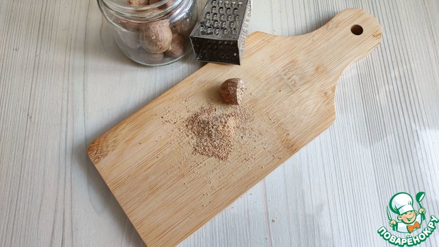 Далее добавить натертый мускатый орех (1/2 ч. ложки), добавить 2 ст. ложки сметаны, огонь убавить до минимума и дать прокипеть дополнительно 5-10 мин.