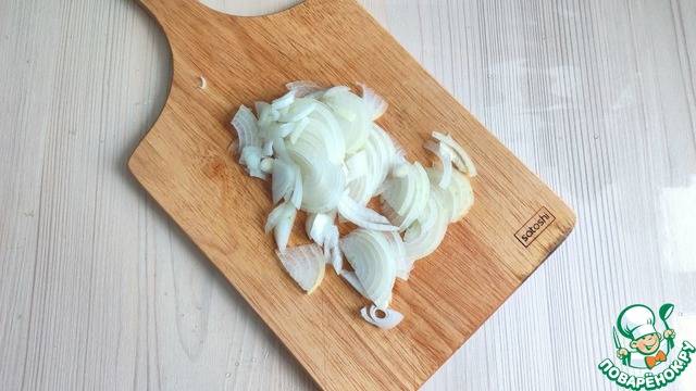 • Репчатый лук (1 шт.) нашинковать полукольцами.