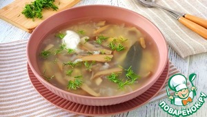 • При подаче добавить в груздянку сметану и посыпать свежей зеленью укропа.