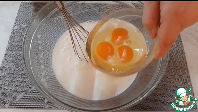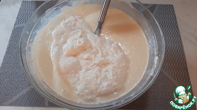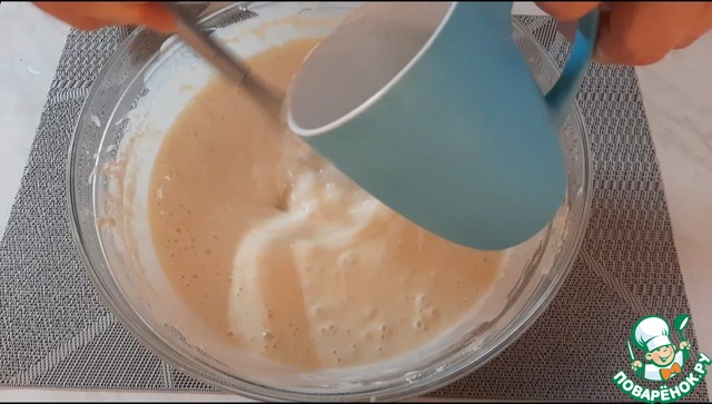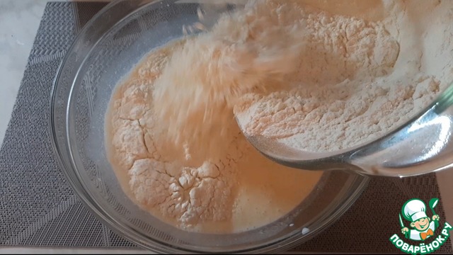 Добавляем постепенно муку и замешиваем однородное тесто без комочков.