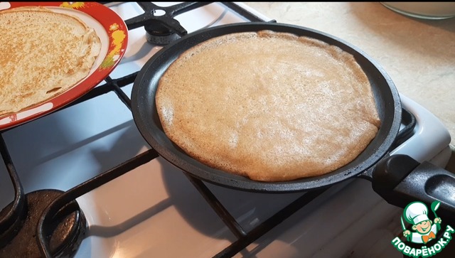 Выпекаем блины. Первый раз смазываем сковороду растительным маслом.