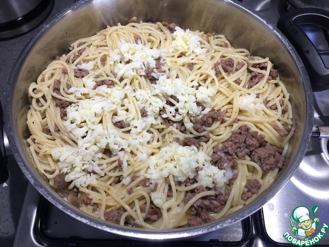 Ингредиенты для «Спагетти с фаршем и грибами»: