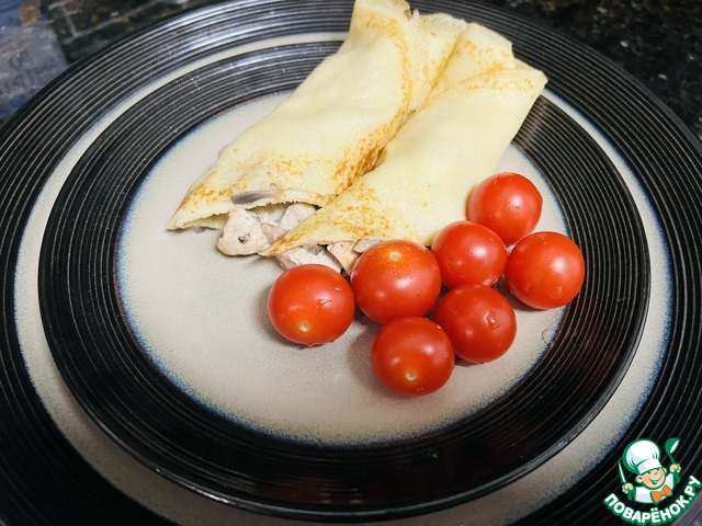 Рецепт «Дрожжевые блины с курицей и шампиньонами»: