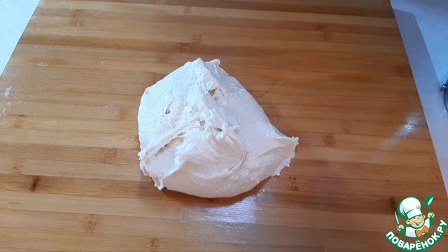 Готовое тесто выкладываем на стол и подмешиваем руками и округляем.