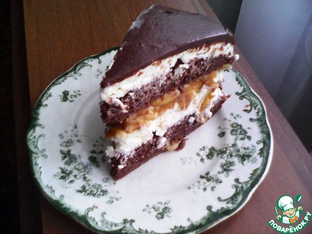 [+5]Очень понравился пропитанный молоком бисквит, беру на заметку. Вместо варёной сгущёнки использовала остатки карамели. Действительно, очень похоже на сникерс. Орешки доминируют во вкусовом пространстве.