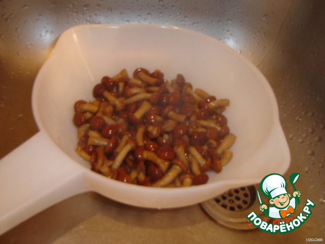 Опят отварить в подсоленной воде и откинуть