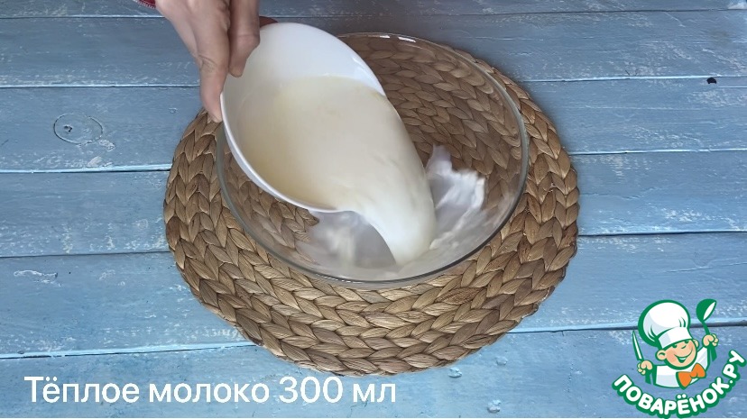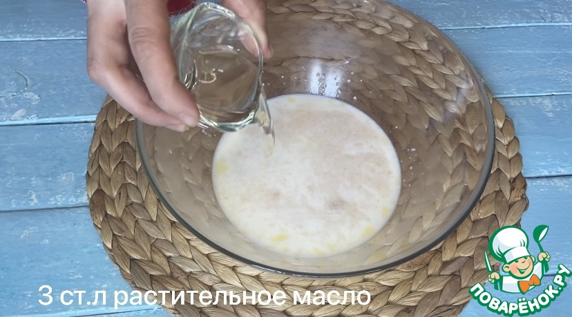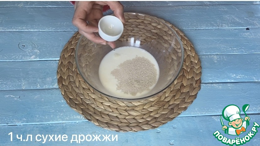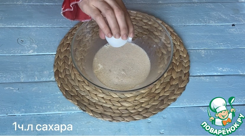 Сахар и оставляем на несколько минут, чтоб дрожжи активировались