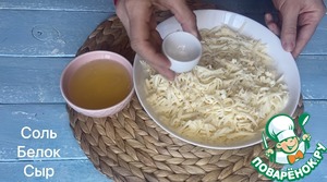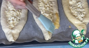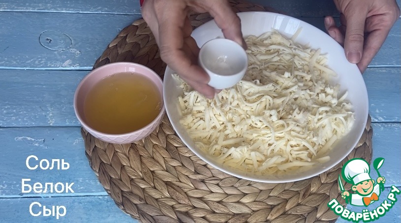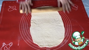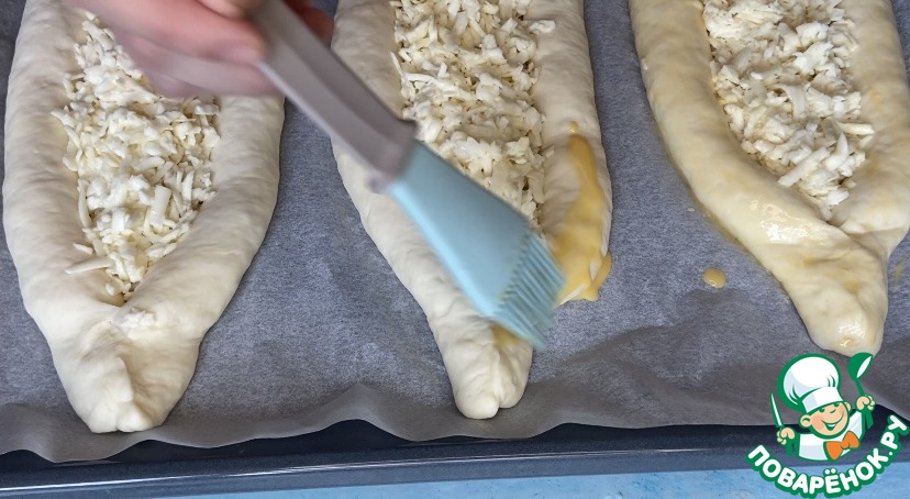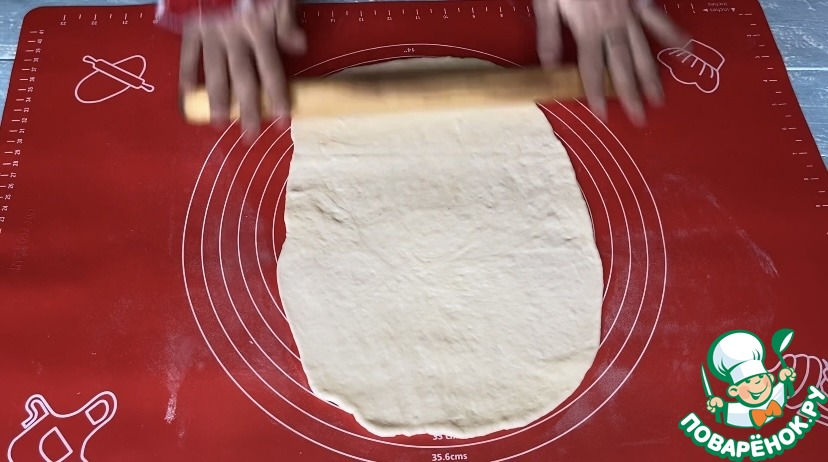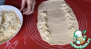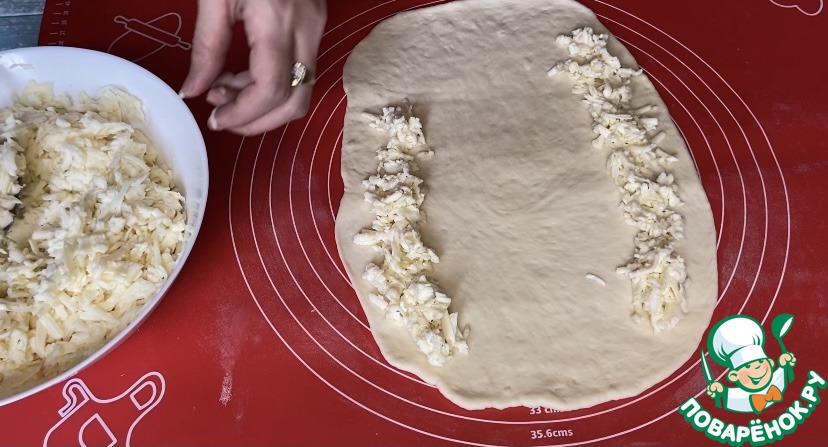 По краям теста выкладываем сыр и, закручивая, хорошо закрепляем края