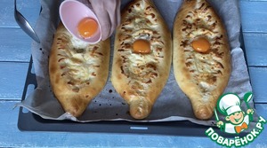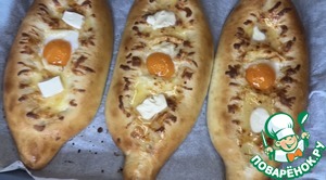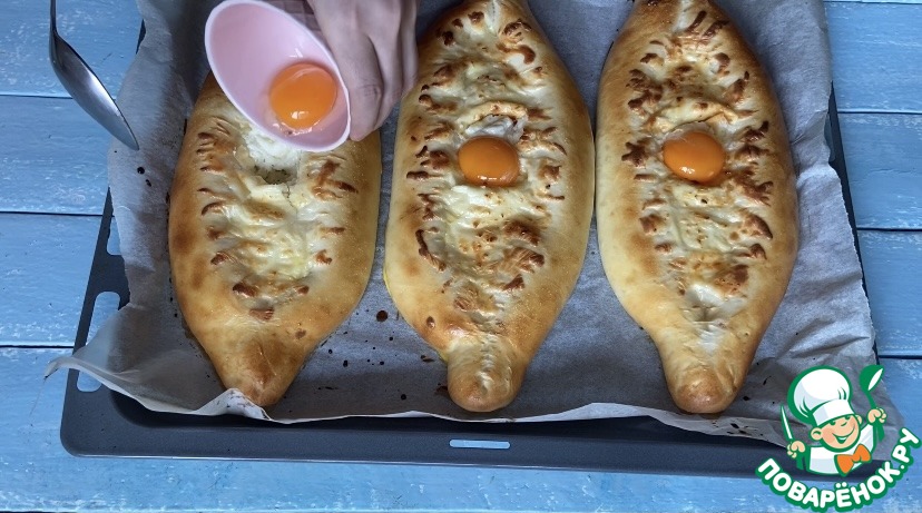 Посередине хачапури выкладываем желтки и ещё на несколько минут отправляем в духовку