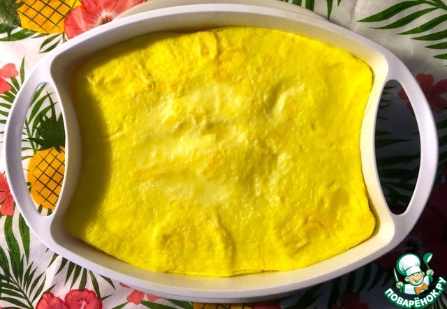 Смазываем дно чаши маслом и отправляем в нее наш омлет — Режим «Выпечка» 20 минут.
