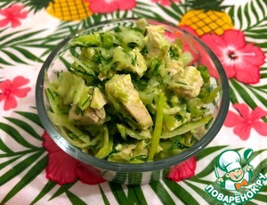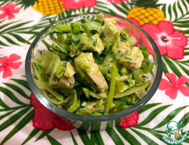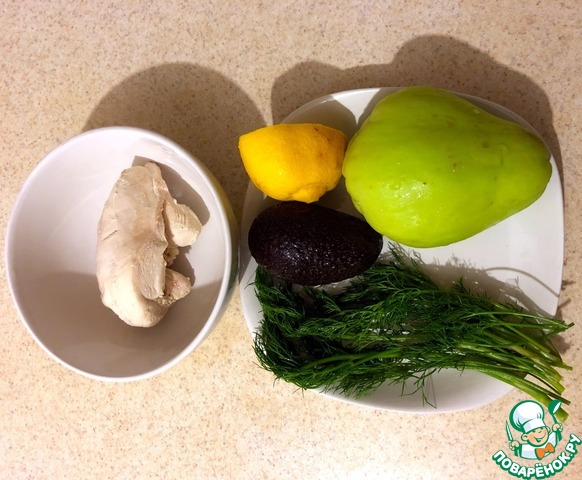 Хочу поделиться рецептом необычного салата из отварной курочки с мексиканским огурцом (чайотом) и авокадо.