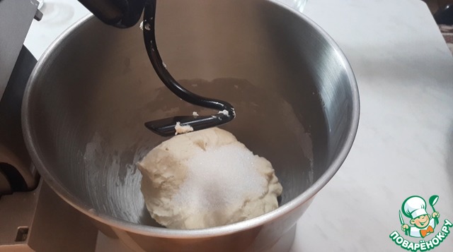 Добавляем сливочное масло и вымешиваем пока тесто не станет гладким, однородным и эластичным.