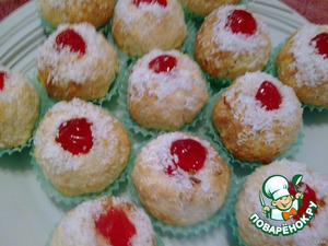 Ставим в духовку на 10- 15 мин. при тем. 150 гр. вытаскиваем кокосики и посыпаем сверху оставшеися стружкои |