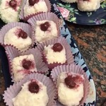 Ставим в духовку на 10- 15 мин. при тем. 150 гр. вытаскиваем кокосики и посыпаем сверху оставшеися стружкои