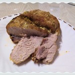 [+5]Кусок около 1 кг. ели уже через 1,5ч. истекающее чуть розоватым соком. Оставшуюся половину вернула в духовку ещё на 20мин. для холодной нарезки.