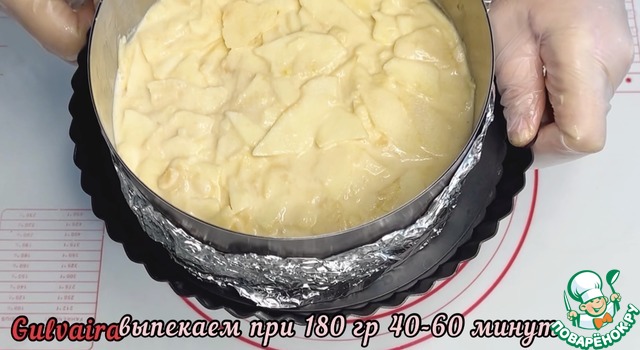 итак, все по-порядку, то что показано в ролике по пропорциям далеко от истины, я его просто потом посмотрела... Представляете 900г яблок мелкой нарезки - это очень большой объем, и если это сдобрить соком хотя бы с половинки лимона - это очень кисло!!! у меня получилось 600г яблок - и это целая миска!!! И еще свежие яблоки обработанные лимонным соком делаются гораздо...тверже... Вспомните, кто варил яблочное варенье.... дольки бросали или в лимонную кислоту или сок лимона добавляли, чтобы они не разваливались. Количество теста тоже... не ахти как сопоставимо. Я брала форму непригорайку диаметром 20 см, кстати неразъемную...потужила на этот счет. Итак, ставим 180 градусов, ставим форму в духовку, таймер на час и ждем...Итак... самое интересное - верх этого произведения подрумянился, проверяла готовность по деревянной палочке .. непонятность полная... вытряхнуть такой пирог даже из фирменной формы практически невозможно... Если кто решиться печь - берите только разъемную.... Внутри...кисель чистой воды, яблоки ведь еще и сок припустили... короче, сплошная кислота с тушеными яблоками с киселем.... Посмеялась над собой... прочитала - сразу не понравилось, но ведь повыпендриваться надо, лучше бы обычную шарлотку испекла...Девушки, это мое личное мнение после выпечки, пеку не первый год всякие вкусности, но вот такое - нам не надь...Яблоки жалко..