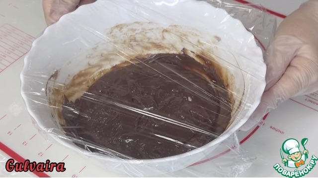 Растопленный шоколад вливаем в яичную смесь. Перемешиваем.