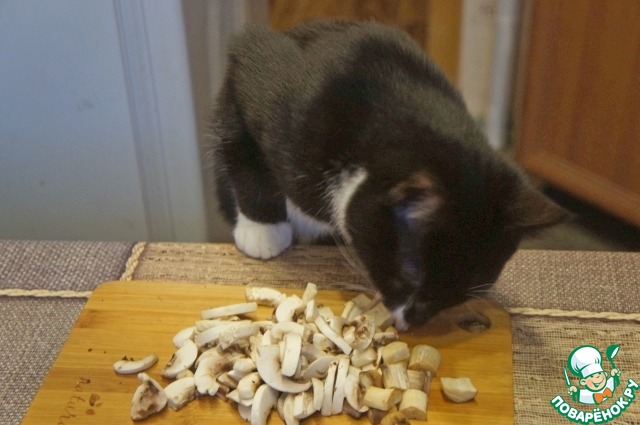 Грибы почистить и нарезать ломтиками или кусочками.