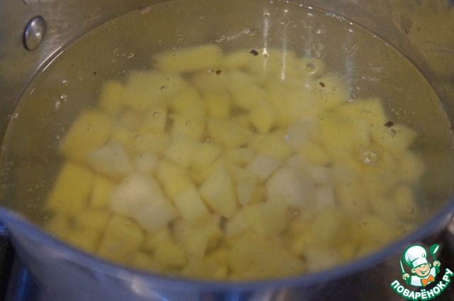 Картофель нарезать небольшими кубиками.