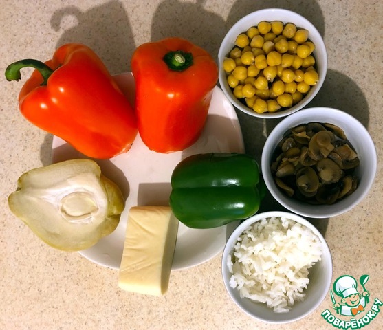 Ингредиенты для «Перец, фаршированный нутом, рисом и грибами»: