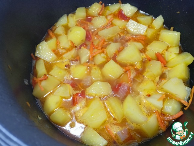 • Добавляем в воду и картофель — Режим «Тушение» 20 минут