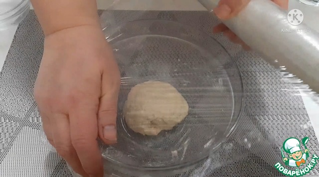Выкладываем тесто в миску смазанную растительным маслом. Прикрываем пищевой плёнкой и оставляем на 40 минут при комнатной температуре.