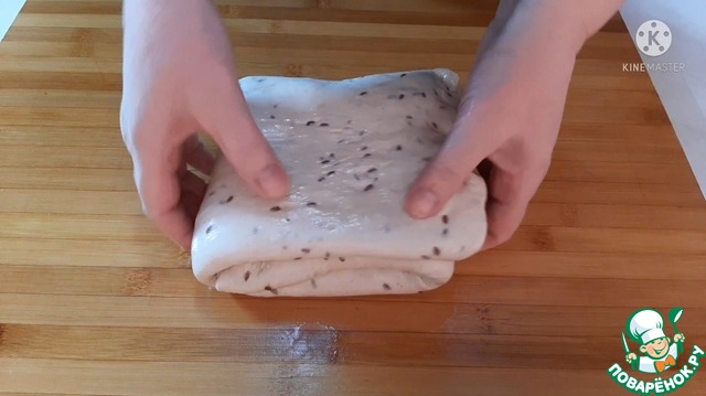 Растягиваем тесто руками и складываем. После чего округляем. Выкладываем снова в миску, прикрываем и оставляем на 1 час на подъем. После чего снова повторяем растягивание и складывания теста. После оставляем еще на 1 час 20 минут на подъем.