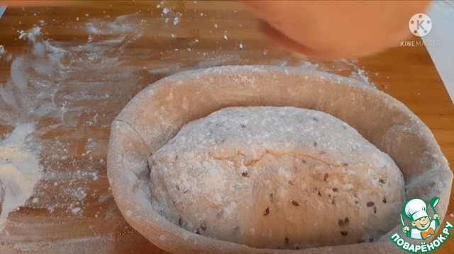 Выкладываем в расстоячную корзину швом на верх. Присыпаем мукой и прикрываем. Оставляем на 1 час.
