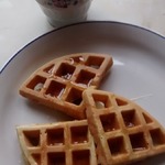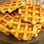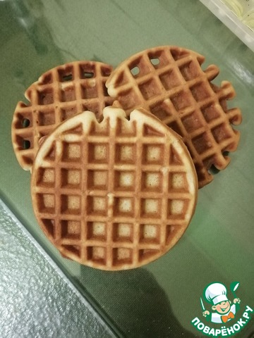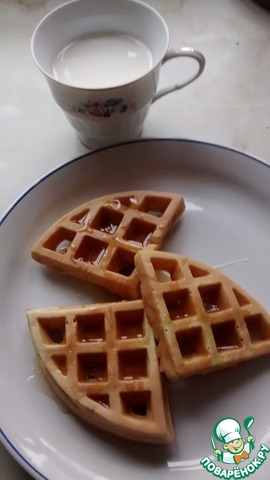 Готовое тесто выкладываем в разогретую вафельницу по одной столовой ложке, закрываем крышку и ждём до готовности. Примерно 2-3 минуты.