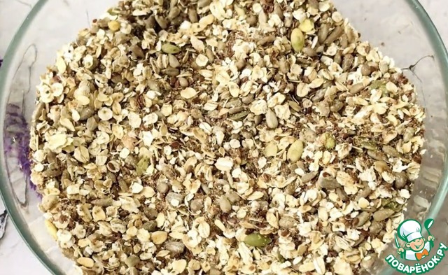 Семена подсолнечника и тыквы заранее помыть. Перемешать все сухие ингредиенты.