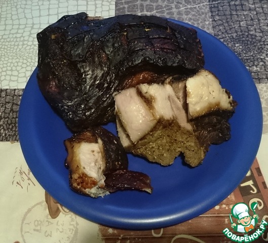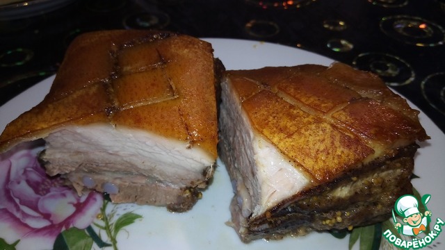 Запекаем свинину при температуре 220°С, 60 минут. Затем снимаем фольгу и уменьшаем температуру до 200°С и запекаем до готовности грудинки еще 90-120 минут.