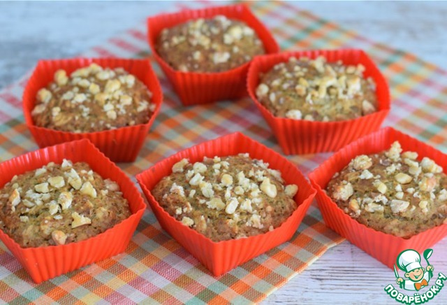 Присыпать будущие кексы дробленым орехом. (этот шаг по желанию, но нам нравится такое дополнение)