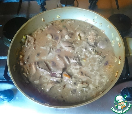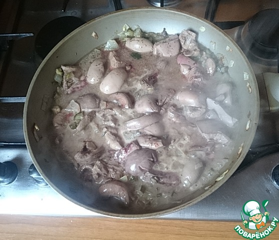 Теперь придется немного постоять у плиты. Помешиваем переодически то, что у нас получилось в сковороде. :) Почки как и печень очень быстро могут получиться "деревянными". Не переварите.