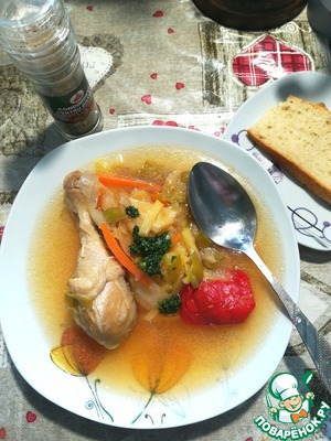 Вкусный и быстрый супчик в скороварке. Вкус набирается за счет ингредиентов. Все натуральное, нет подсолнечного масла. Подготовка - 10 мин. Можно резать ножом, можно шинковкой. Готовится - 20 мин. 2 порции.