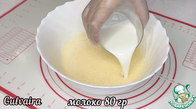 Далее добавляем молоко и растительное масло. Хорошо перемешиваем.